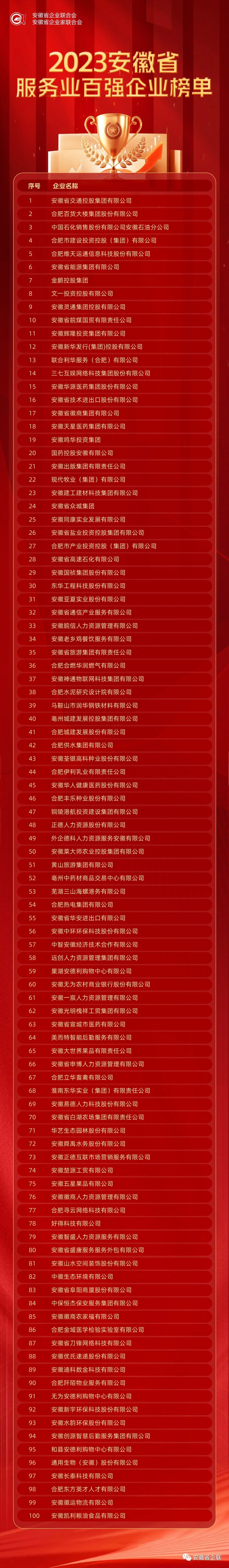 附件:2023安徽省百強企業(yè)、制造業(yè)、服務(wù)業(yè)百強企業(yè)名單