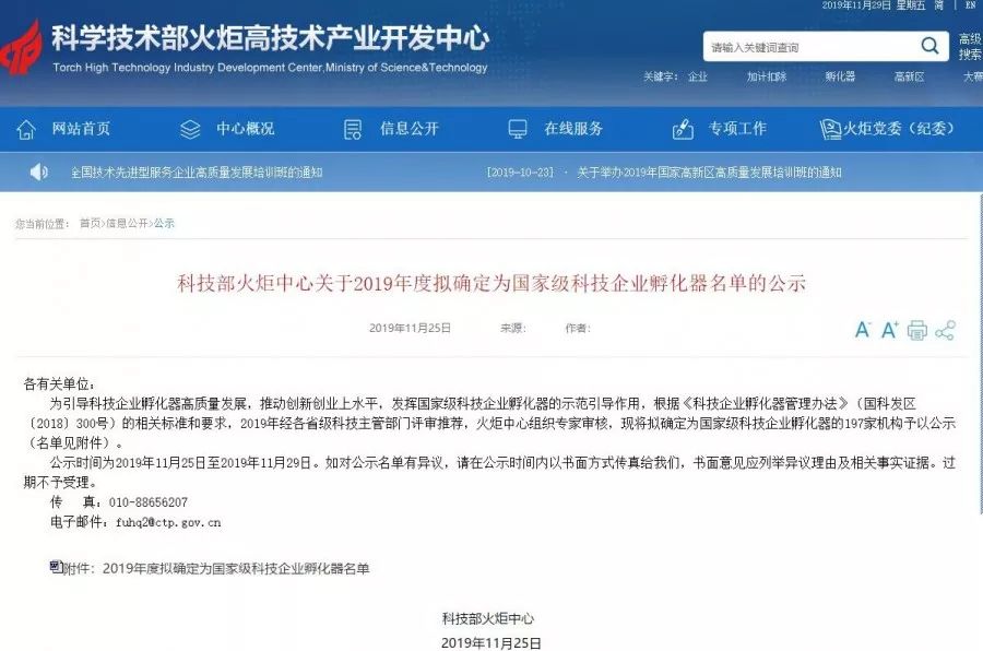 2019年11月25日,國家科技部火炬中心發(fā)布了“關(guān)于2019年度擬確定為國家級科技企業(yè)孵化器名單的公示(國科發(fā)區(qū)﹝2018﹞300號)”的通知,蕪湖礱坊科技企業(yè)孵化器(大礱坊科技文化園)正式通過“國家級科技企業(yè)孵化器”認(rèn)定。
