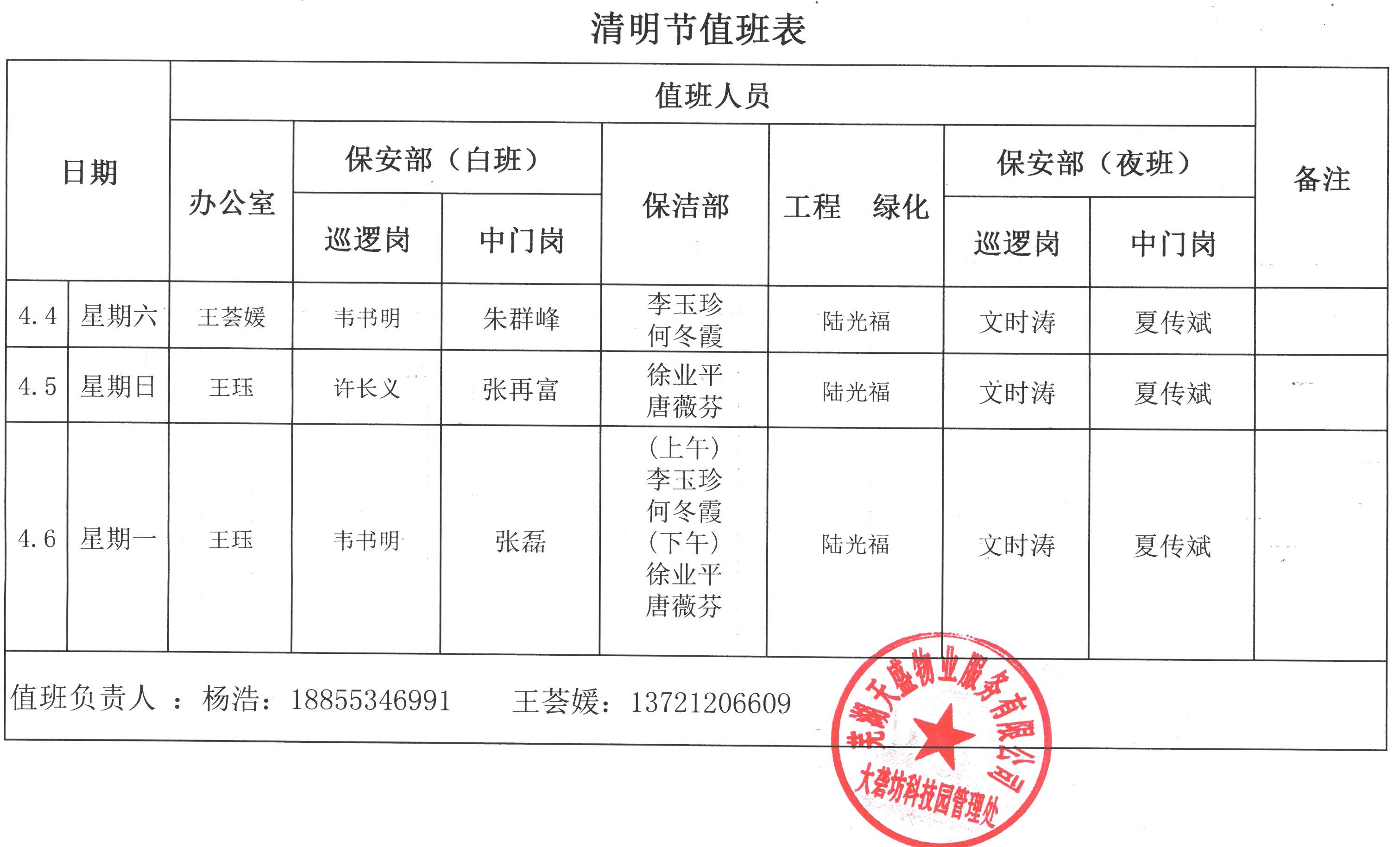 2.天盛物業清明節假期值班表