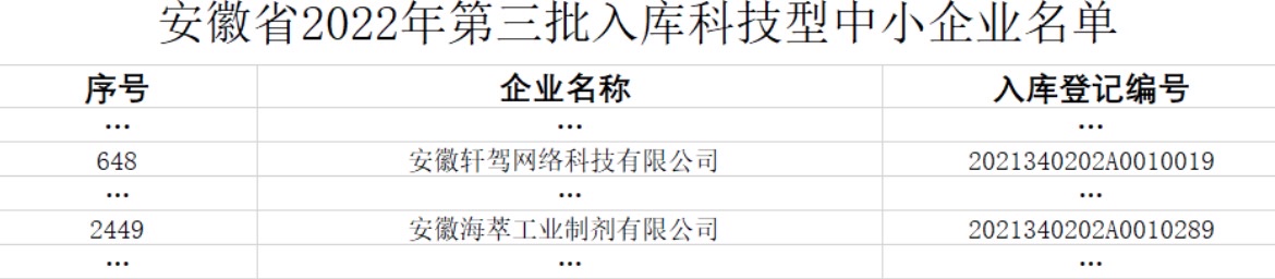 5月26日,安徽省科技廳公示了2022年第三批擬入庫科技型中小企業(yè)名單,園區(qū)安徽海萃工業(yè)制劑有限公司和安徽軒架網(wǎng)絡(luò)科技有限公司兩戶企業(yè)成功入庫。